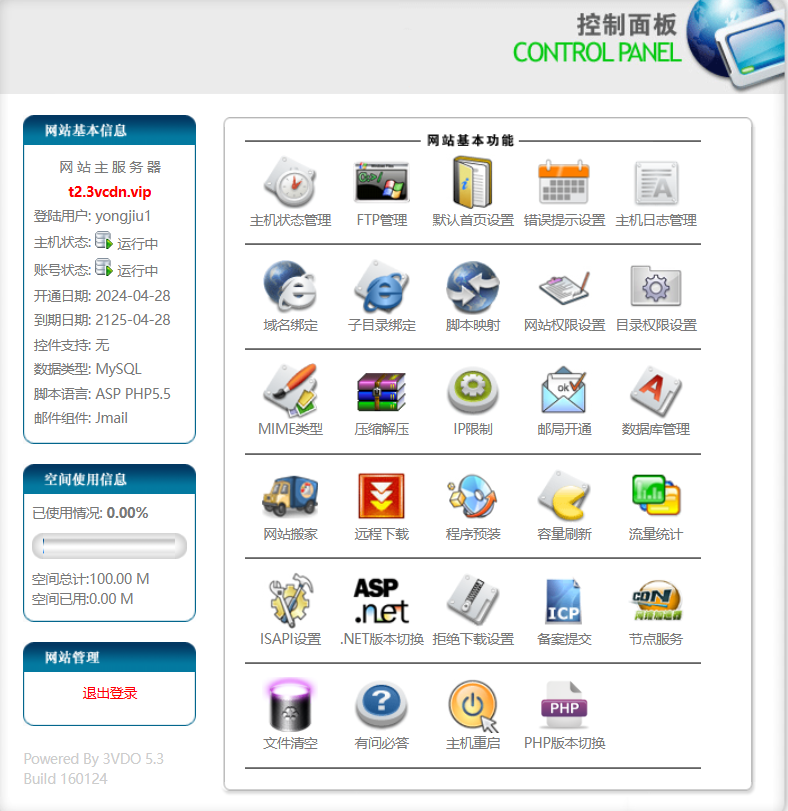 2.进入虚拟主机管理页面,里面有很多功能,可以根据需要选择